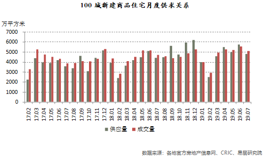 供求关系方面,7月份100个城市新建商品住宅供应量为4810万平方米,成交量为5086万平方米。楼市呈现"供小于求"的态势,而此类态势也导致7月份住宅库存数据出现环比下降。如果后续供应增加、成交疲软,那么供求关系又会出现新的调整。