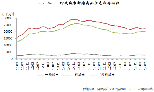 在城市结构方面,三类城市均呈现库存同比正增长态势。报告显示,截至7月底,一、二、三四线100个城市新建商品住宅库存总量分别为2704、22149和20074万平方米,环比增速分别为-2.6%、-0.4%和-0.5%,同比增速分别为19.7%、2.0%和9.1%。