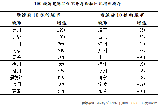 从城市排行来看,近6成城市库存同比增长。报告显示,7月份100个城市中有58个城市库存出现了同比正增长现象,包括惠州、金华和岳阳的库存同比增长态势最明显,库存同比增速分别达到了129%、126%和76%。