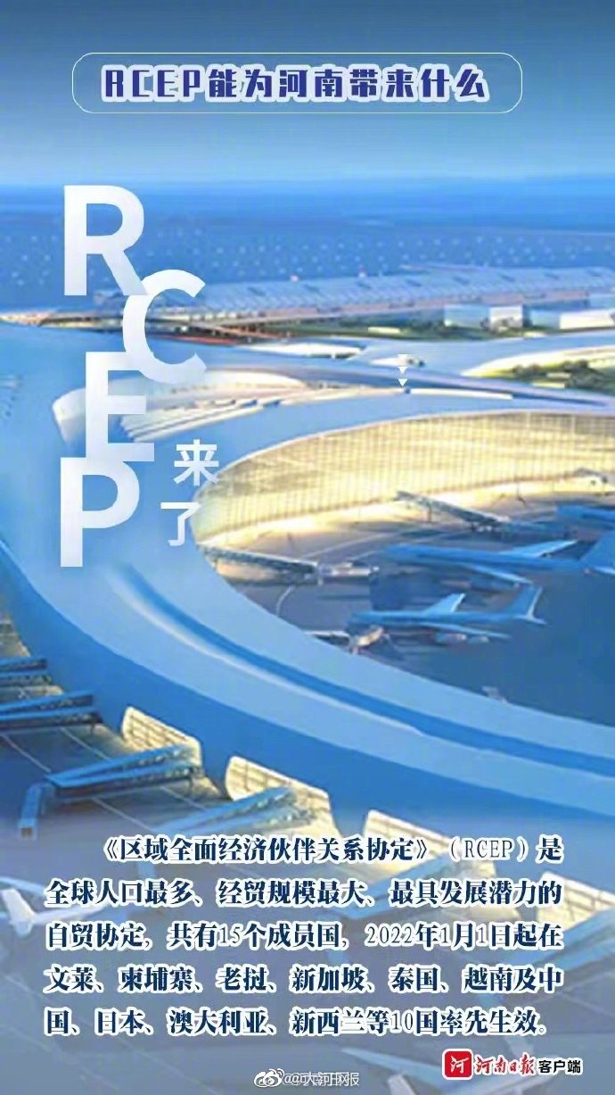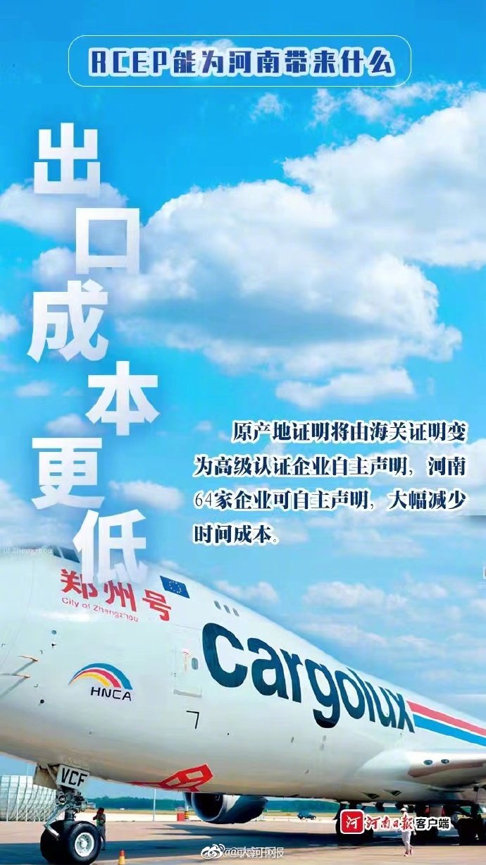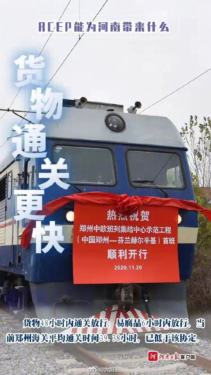 12月28日,记者从省委宣传部召开的“奋进新征程 中原更出彩”主题新闻发布会上获悉,河南省落实《区域全面经济伙伴关系协定》(RCEP)行动方案,从增量提质货物贸易、创新发展服务贸易、深化双向投资合作、打造高水平开放通道、优化国际化营商环境、强化组织实施保障等6个方面,帮助企业充分运用RCEP规则,把握市场开放机遇。RCEP也将于2022年1月1日起正式生效实施。