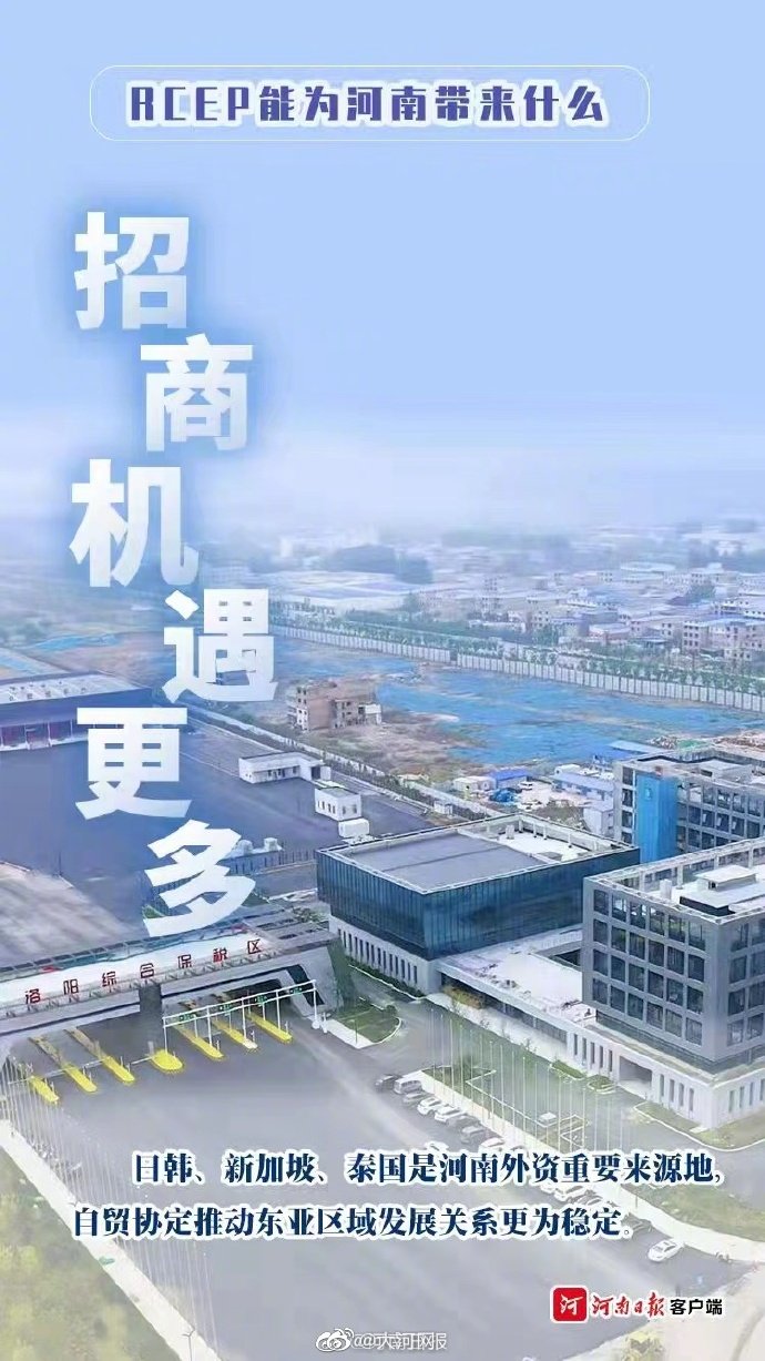 据省商务厅数据显示,今年前11月,河南对RCEP成员国进出口1966亿元,增长20.9%,占全省总额27.4%。其中,东盟是我省第2大贸易伙伴,韩国、日本分别是我省第5、6大贸易伙伴。RCEP通关便利化、原产地规则等系列减少贸易壁垒的措施,将推动我省与RCEP成员国贸易规模快速增长。(记者 孙静)#RCEP能为河南带来什么#