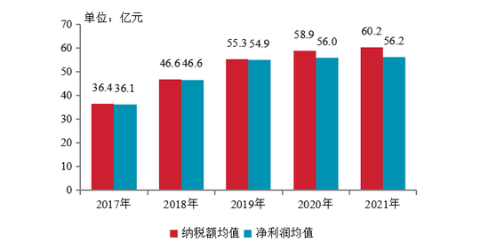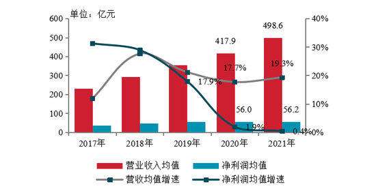 百强企业2017-2021年营业收入与净利润均值变化情况