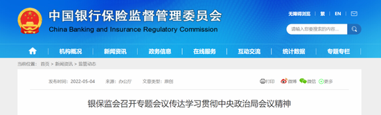 近日,银保监会召开专题会议,深入传达学习中央政治局会议精神和习近平总书记在中央政治局第三十八次集体学习时的重要讲话精神,研究部署具体贯彻落实措施。